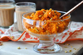 Gajrela (Geraspte wortelen gekookt in dikke melk en gegarneerd met noten en rozijnen)