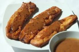 De bananen schillen en in schuine plakken van ongeveer ½ cm. dikte snijden.