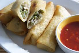 Voor het serveren moeten de loempia’s gebakken worden in een pan met hete olie. Haal eerst de loempia’s door een geklutst ei dat een beetje is aangelengd met water. Bak het in hete olie.