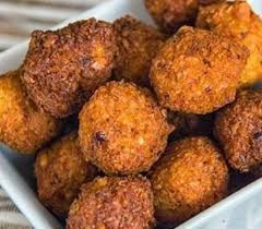 Laat olie in een diepe pan heet laten worden. Vorm met natte vingers bolletjes en bak deze in de pan goudbruin.