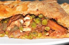 Doe de pastei in een voorverwarmde oven (220 ºC) en bak deze in 40 minuten goudbruin en gaar. Note: U kunt ook kleine pasteitjes maken. Leg dan de vulling op een plakje bladerdeeg, vouw dit dubbel en plak de randen vast met wat water. Afbakken in 30 minuten.