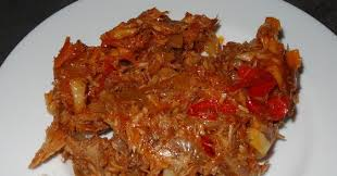 Maak de vis open en haal al de vis uit het velletje. Verwijder zoveel mogelijk graten. Schil de ui en knoflook. Snijd de ui, knoflook en peper fijn. Doe de olie in de pan en laat dit warm worden. Doe de ui en peper in de pan. Als de ui lichtbruin is doe je de knoflook in de pan. Doe de vis in de pan en schep het geheel goed om op middelmatig vuur. Doe de theelepel tomatenpuree, zout en zwarte peper in de pan. Schep het geheel goed om en laat deze staan op het vuur, doe de deksel op de pan. Was de tomaat en snijd de tomaat in kleine blokjes en voeg die toe aan de vis. Schep het geheel nog eens goed om en doe de deksel weer op de pan. Af en toe weer even omscheppen anders brand de vis aan. Als de tomatenblokjes zijn gesmolten is de vis klaar. Naar eigen smaak zout toevoegen.